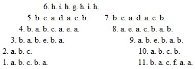 There are thirteen recesses, indicative of thirteen arches, seen in the ground plan, fig. 2, Plate I. Of these, the second and twelfth arches rise higher than the rest; so high as to break the decorated band; and the groups of triangles we have to enumerate are, therefore, only eleven in number; one above each of the eleven low arches. And of these eleven, the first and second, tenth and eleventh, are at the ends of the aisles; while the third to the ninth, inclusive, go round the apse. Thus, in the following table, the numerals indicate the place of each entire group (counting from the south to the north side of the church, or from left to right), and the letters indicate the species of triangle of which it is composed, as described in the list given above.