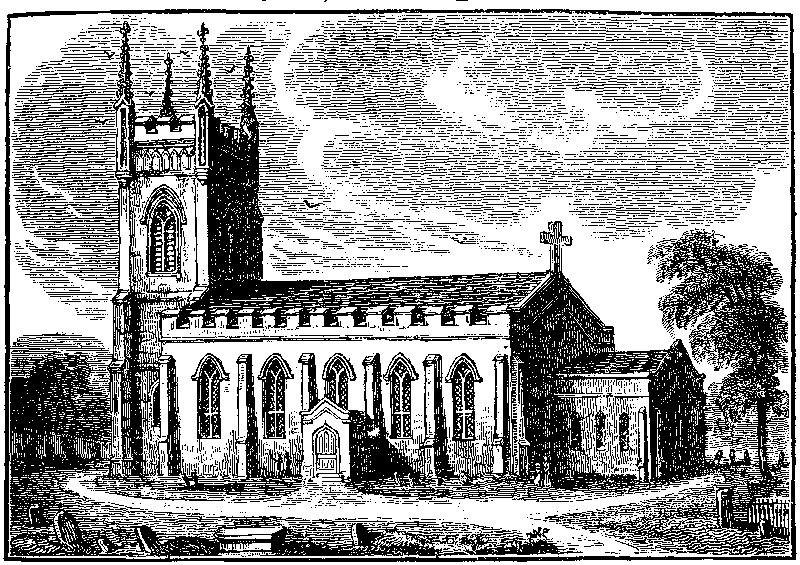 But we must pass on to the church. The old building was in the Gothic or pointed style, with lancet windows, &c., but much disfigured by churchwardens' repairs, although the great Inigo Jones is said to have built its square, brick tower. At length, a considerable portion of this ancient structure fell in one Sunday morning, during the service, but, as the newspapers say, "fortunately no lives were lost." The inhabitants then resolved to rebuild nearly the whole, and the design of Mr. J.B. Watson was adopted. The foundation stone was laid March 31, in the present year, and the building is to be completed by Christmas next. The church is intended to contain 1,100 persons. The length of the interior, 65 feet; width, 47 feet; height to ceiling, 25 feet. The chancel is to be rebuilt at the expense of the impropriators. The lower part of Inigo Jones's tower is to remain, and the whole is to be raised 23 feet. These repairs, with the enclosure of the churchyard, will not exceed 4,000l.; and the progress of the undertaking is highly creditable to the taste and execution of all the parties concerned.