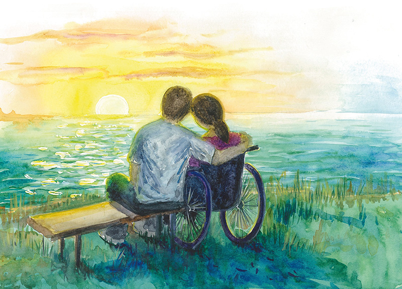 Всё начиналось с малого, с коротких ежедневных прогулок, но они становились все длиннее и длиннее. Затем девушка решила не ограничиваться этим и стала посещать музеи. Сколько красивых произведений искусств мы с ней вместе увидели, и не счесть! Конечно, поездки были трудны как для неё, так и для меня, ведь вокруг так мало что приспособлено для таких людей. Но хозяйку это не останавливало, она стала путешествовать в соседние города, нашла свое призвание – стала рисовать удивительные, пронзительные картины, и как-то раз встретила Его – будущего спутника жизни. Мне кажется, я сразу догадалась, что это он, а девушка ещё долго сомневалась, может ли нравиться ему, и вопрошала тишину вокруг. Мне так хотелось ей крикнуть: «Разве ты не видишь, он без ума от тебя!» Но мне оставалось лишь ждать, когда оба сами разберутся в своих чувствах.