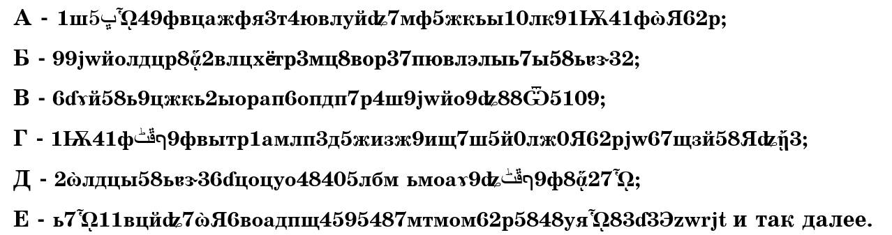1.365. Следовательно, Конфигурацию каждой из СФУУРММ-Форм, произвольно или целенаправленно проявляющихся в информационном пространстве нашей Формы Самосознания и субъективно отражающих различные коварллертные сочетания разнородной фрагментированной Информации (элементарные Мысли и Чувства – ИИССТЛЛИИ и ААЙЛЛИИ), можно условно изобразить в виде ряда определённым образом сочетающихся символов, а сам мыслечувственный процесс – в виде бесконечных квантовых последовательностей (аделей) этих символов, структурирующих своими всё более и более усложнёнными Конфигурациями всю сллоогрентность квантового диапазона проявления СФУУРММ-Форм в информационном пространстве Самосознания. Квантовые признаки, субъективно интерпретируемые нами, как «ментальность», «рассудочность», «интеллектуальность», полноценнее могут отражаться через всевозможные начертания чисел и образуемых ими цифровых сочетаний, а признаки «витальности» (чувственности, эмоциональности) – через всё конфигурационное разнообразие букв и символов, характерных для множества алфавитов.