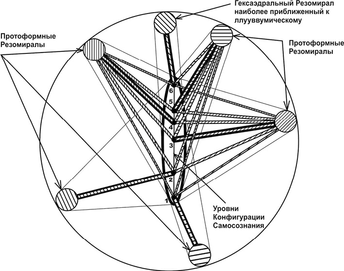 Рис. 5. «Проекции» резомиральных структур в фокусной Конфигурации Формы Самосознания.