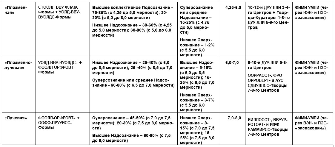 Подробно структуру Самосознания ЛЛУУ-ВВУ (от 2,5 до 8,0 мерности) см. в Приложении 1 к первому тому.