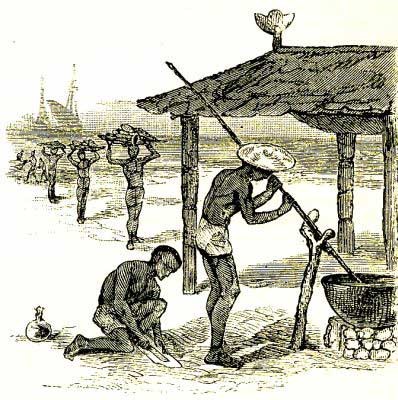 The sea-cucumbers having been smoked in the large caldrons (for the mimosa bark is consumed in the process), and then dried, are ready for the market, and, packed in bundles, are stowed away in the holds of the junks and proas off shore.