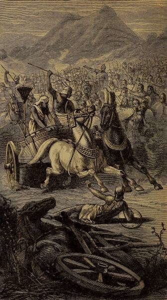 WAR-HORSES AND ANCIENT EGYPTIAN CHARIOT.