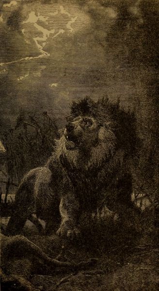 There are few sounds which strike more awe than the Lion's roar. Even at the Zoological Gardens, where the hearer knows that he is in perfect safety, and where the Lion is enclosed in a small cage faced with strong iron bars, the sound of the terrible roar always has a curious effect upon the nerves. It is not exactly fear, because the hearer knows that he is safe; but it is somewhat akin to the feeling of mixed awe and admiration with which one listens to the crashing thunder after the lightning has sped its course. If such be the case when the Lion is safely housed in a cage, and is moreover so tame that even if he did escape, he would be led back by the keeper without doing any harm, the effect of the roar must indeed be terrific when the Lion is at liberty, when he is in his own country, and when the shades of evening prevent him from being seen even at a short distance.