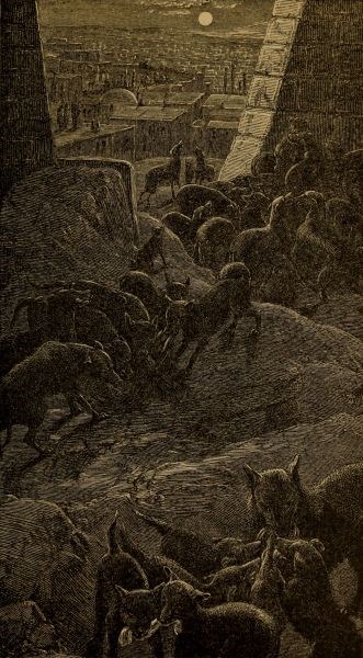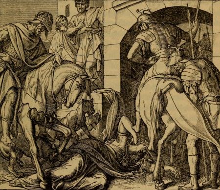 But, with the inhabitants of Palestine, such an event was by no means unlikely. It was, and is still, the custom to bury the corpse almost as soon as life has departed, and such would ordinarily have been the case with the dead body of Jezebel. But, through fear of the merciless Jehu, by whose command she had been flung from the window of her own palace, no one dared to remove her mangled body. The dogs, therefore, seized upon their prey; and, even before Jehu had risen from the banquet with which he celebrated his deed, nothing was left of the body but the skull, the feet, and the hands.