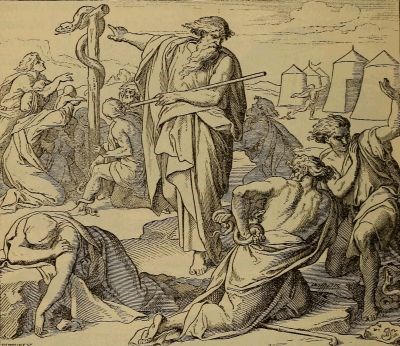 THE ISRAELITES ARE BITTEN BY SERPENTS IN THE WILDERNESS, AND MOSES LIFTS UP THE SERPENT OF BRASS.