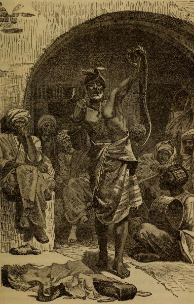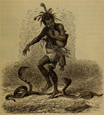 One of these men will take a Cobra in his bare hands, toss it about with perfect indifference, allow it to twine about his naked breast, tie it around his neck, and treat it with as little ceremony as if it were an earth-worm. He will then take the same Serpent—or apparently the same—make it bite a fowl, which soon dies from the poison, and will then renew his performance.