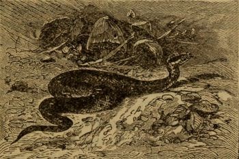 A quick and sudden movement would, however, alarm the reptile, which would strike in self-defence, and, sluggish as are its general movements, its stroke is delivered with such lightning rapidity that it would be sure to inflict its fatal wound before it was seized.