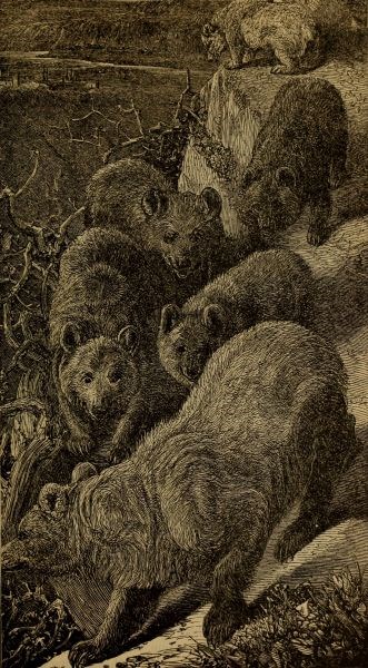 To all animals that rear their young is given a sublime and almost supernatural courage in defending their offspring, and from the lioness, that charges a host of armed men when her cubs are in danger, to the hen, which defies the soaring kite or prowling fox, or to the spider, that will give up her life rather than abandon her yet unhatched brood, the same self-sacrificing spirit actuates them all. Most terrible therefore is the wrath of a creature which possesses, as is the case of the Bear, the strongest maternal affections, added to great size, tremendous weapons, and gigantic strength. That the sight of a Bear bereaved of her young was well known to both writers and contemporary readers of the Old Testament, is evident from the fact that it is mentioned by several writers, and always as a familiar illustration of furious anger. See for example 2 Sam. xvii. 8, when Hushai is dissuading Absalom from following the cautious counsel of Ahithophel, "For thou knowest thy father and his men, that they be mighty men of war, and they be chafed in their minds as a bear robbed of her whelps in the field." Solomon also, in the Proverbs (xvii. 12), uses the same image, "Let a bear robbed of her whelps meet a man, rather than a fool in his folly."