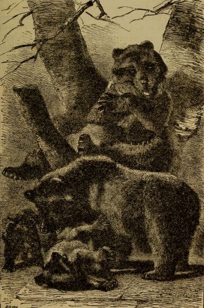 On those elevated spots the Bear loves to dwell, and throughout the summer-time generally remains in such localities. For the Bear is one of the omnivorous animals, and is able to feed on vegetable as well as animal substances, preferring the former when they can be found. There is nothing that a Bear likes better than strawberries and similar fruits, among which it will revel throughout the whole fruit season, daintily picking the ripest berries, and becoming wonderfully fat by the constant banquet. Sometimes, when the fruits fail, it makes incursions among the cultivated grounds, and is noted for the ravages which it makes among a sort of vetch which is much grown in the Holy Land.