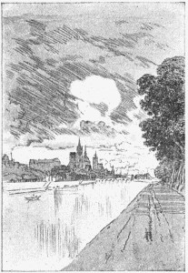 A certain flatness of impression awaits you also, I think, at Marmoutier, which is the other indispensable excursion in the near neighbourhood of Tours. The remains of this famous abbey lie on the other bank of the stream, about a mile and a half from the town. You follow the edge of the big brown river; of a fine afternoon you will be glad to go farther still. The abbey has gone the way of most abbeys; but the place is a restoration as well as a ruin, inasmuch as the Sisters of the Sacred Heart have erected a terribly modern convent here. A large Gothic doorway, in a high fragment of ancient wall, admits you to a garden-like enclosure, of great extent, from which you are further introduced into an extraordinarily tidy little parlour, where two good nuns sit at work. One of these came out with me and showed me over the place—a very definite little woman, with pointed features, an intensely distinct enunciation, and those pretty manners which (for whatever other teachings it may be responsible) the Catholic Church so often instils into its functionaries. I have never seen a woman who had got her lesson better than this little trotting, murmuring, edifying nun. The interest of Marmoutier to-day is not so much an interest of vision, so to speak, as an interest of reflection—that is, if you choose to reflect (for instance) upon the wondrous legend of the seven sleepers (you may see where they lie in a row), who lived together—they were brothers and cousins—in primitive piety, in the sanctuary constructed by the blessed Saint Martin (emulous of his precursor, Saint Gatianus), in the face of the hillside that overhung the Loire, and who, twenty-five years after his death, yielded up their seven souls at the same moment and enjoyed the rare convenience of retaining in their faces, in spite of mortality, every aspect of health. The abbey of Marmoutier, which sprang from the grottos in the cliff to which Saint Gatianus and Saint Martin retired to pray, was therefore the creation of the latter worthy, as the other great abbey, in the town proper, was the monument of his repose. The cliff is still there; and a winding staircase, in the latest taste, enables you conveniently to explore its recesses. These sacred niches are scooped out of the rock, and will give you an impression if you cannot do without one. You will feel them to be sufficiently venerable when you learn that the particular pigeon-hole of Saint Gatianus, the first Christian missionary to Gaul, dates from the third century. They have been dealt with as the Catholic Church deals with most of such places to-day; polished and furbished up, labelled and ticketed—edited, with notes, in short, like an old book. The process is a mistake—the early editions had more sanctity. The modern buildings (of the Sacred Heart), on which you look down from these points of vantage, are in the vulgar taste which sets its so mechanical stamp on all new Catholic work; but there was nevertheless a great sweetness in the scene. The afternoon was lovely, and it was flushing to a close. The large garden stretched beneath us, blooming with fruit and and wine and succulent promise, and beyond it flowed the shining river. The air was still, the shadows were long, and the place, after all, was full of memories, most of which might pass for virtuous. It certainly was better than Plessis-les-Tours.