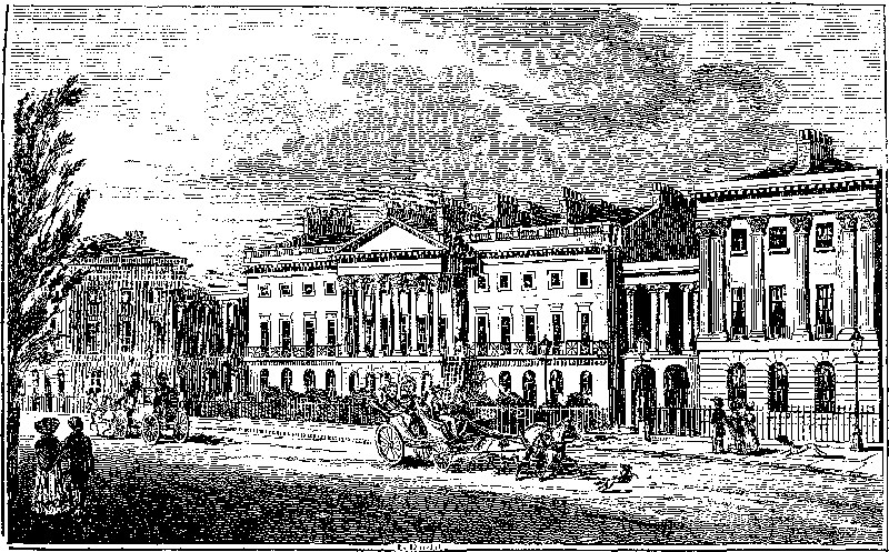 Clarence Terrace is on the western side of the park, and adjoins Sussex Place, whose cupola tops were the signals for critical censure and ridicule among the first structures in this quarter. The artists have, however, profited by the lesson, and the architecture of the Regent's Park bids fair to rank among the proudest successes of art.