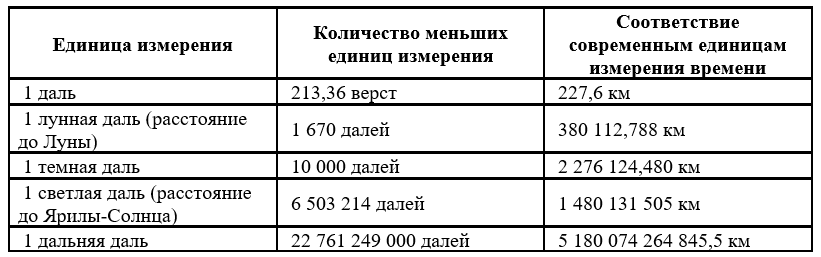 Таблица 1 – Славяно-Арийская система измерений пространства