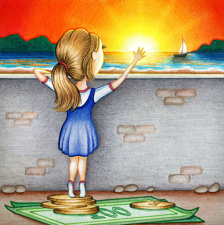 Жила-была девочка, которая то и дело слышала разговоры взрослых про деньги. Все вокруг только про них и говорили. Кому-то денег не хватало, кому-то срочно нужно было погашать кредит, а кто-то просто с трепетом ждал очередную зарплату. Девочка была маленькая, так что своего заработка у неё не было, поэтому приходилось верить взрослым, что деньги и правда очень важная вещь в этом мире.