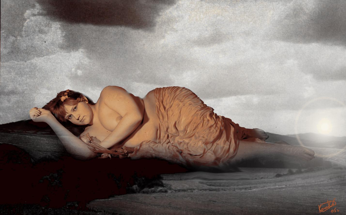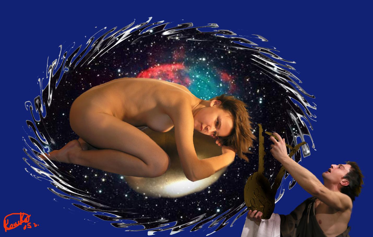 В третьем же Мире, между двух вод, Она начала свой одинокий танец. Над волнами Моря (Понта) неслась Её одинокая фигура к югу.