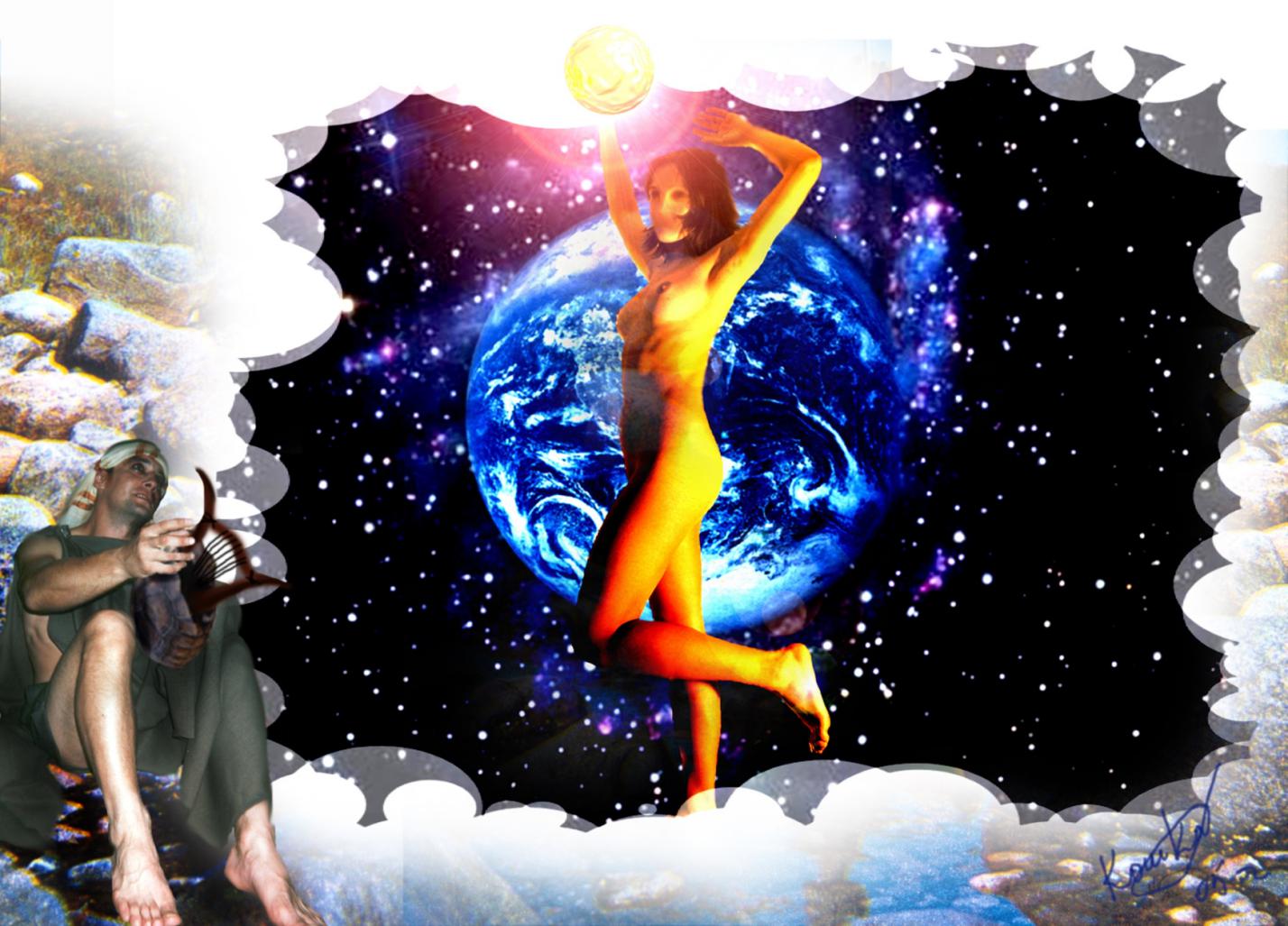 Обнаженная Она восстала из Хаоса. И обнаружила тогда Она, что Ей не на что опереться. Она отделила Свет от Тьмы. Она разделила Хаос на три Мира.