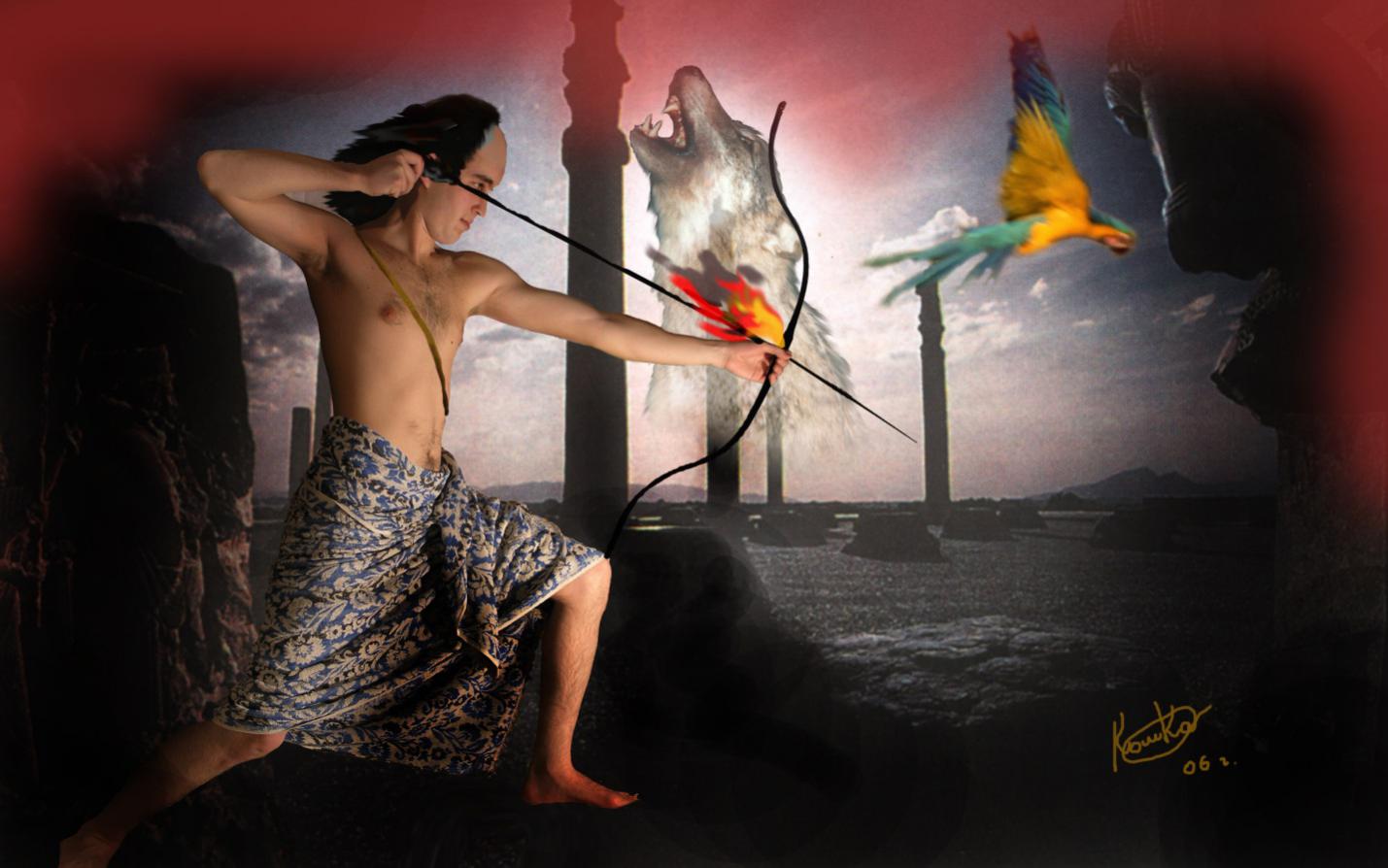 Άπολλων (Аполлон) – в мифологии считается братом Артемиды. Имеет Палестинские корни. Образ архаический и хтонический. Не индоевропейского происхождения. Аполлон – стреловержец, губитель, прорицатель, блюститель гармонии космической и человеческой. Это киллер богов, приносящий смерть старикам, иногда он поражает без всякого повода.24 Кроме всего прочего, под власть Аполлона попадает чума, Аполлон как вправе наслать ее, так и излечить.