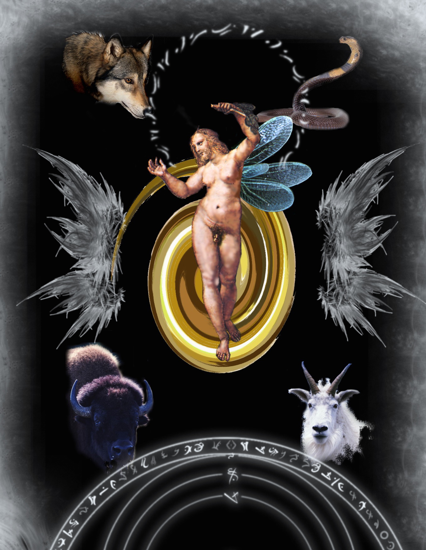За Её (Духа Божьего) спиной возникал северный ветер. Дух-Ветер (Анем), вполне показался Эвриноме пригодным для дальнейшего творения. Обернувшись, Она поймала этот Дух-Ветер (Анем). Сжала его между ладонями. И вот уже не бестелесный Дух, а великий Дракон Офион в Её руках. Северный Борей (Офион) покорился Ей.