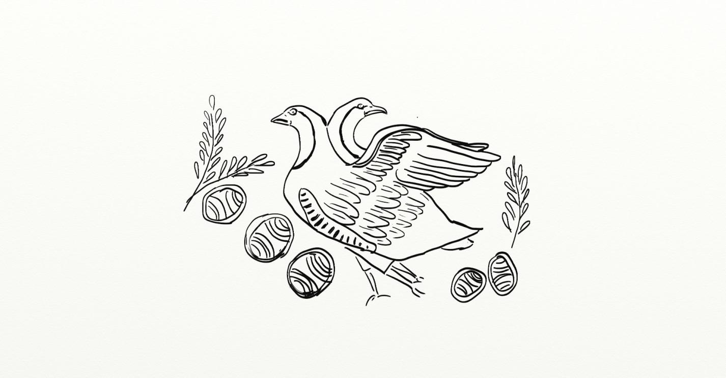 По Её просьбе Офион обернулся семь раз вокруг серебряного яйца и стал сжимать свои кольца, пока яйцо не раскололось надвое. И появилось из яйца триада богинь, три дочери Эвриномы.