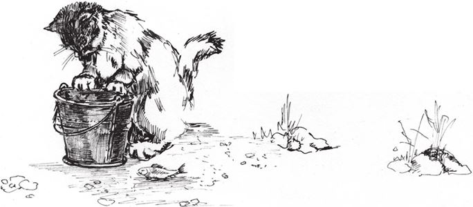 Урча, притаскивала добычу к хозяину, и он, растроганный тем, что она отдаёт ему пойманную рыбу, гладил её по спине. Показывал свою добычу в ведёрке с водой, приговаривая: