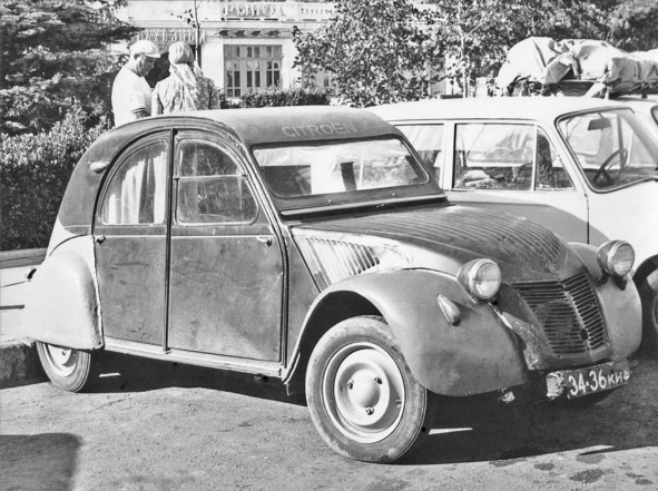 На капоте выпущенного до 1960 г. «Ситроенчика» видны узкие продольные полоски (Ялта, 1970-е)