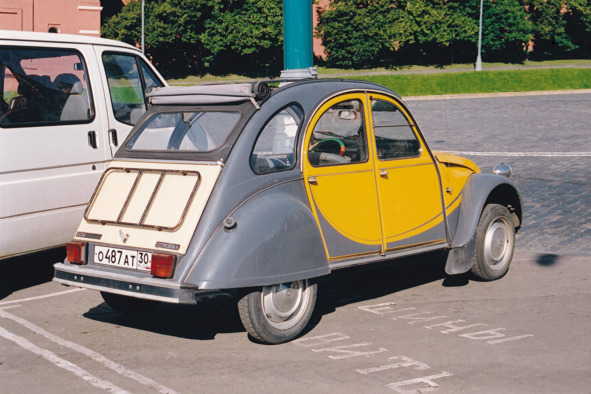 Citroen 2CV6 Club 1981 г. в. c прямоугольными фарами журналистов киевской газеты «Автомир» (Москва, 1997)
