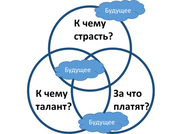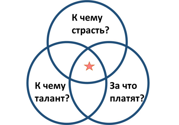 Он предлагает написать на трех разных листах бумаги списки деятельностей, которые а) вы делаете страстно, б) которые вы делаете лучше всех, в) за которые вы могли бы получать оплату.