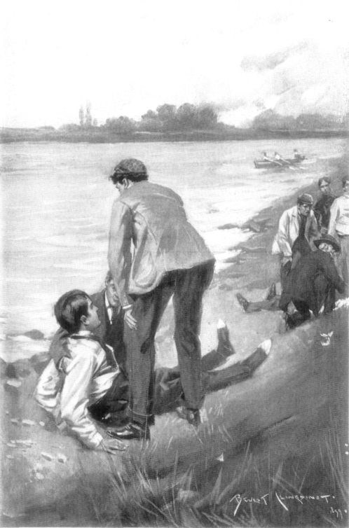 Nerved afresh, Joel took a firm grasp on Clausen's elbow and struck out manfully for shore. It was hard going, and when a bare dozen long strokes had been made his burden so dragged him down that he was obliged to stop, and, floundering desperately to keep the white face above water, take a fresh store of breath into his aching lungs. Then drawing the other boy to him so that his weight fell on his back, he brought one limp arm about his shoulder, and holding it there with his left hand started swimming once more. A dozen more strokes were accomplished slowly, painfully, and then, as encouraging shouts came from shore, he felt the body above him stir into life, heard a low cry of terror in his ear, and then–they were sinking together, Clausen and he, struggling there beneath the surface! Clausen had his arm about Joel's neck and was pulling him down–down! And just as his lungs seemed upon the point of bursting the grasp relaxed around his neck, the body began to sink and Joel to rise!