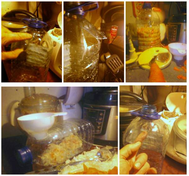 Вот как я солю капусту в такой п/э канистре.(Фото сделаны при люминисц. лампе, ещё прошлой осенью, прошу пардона, что цвета искажены.)