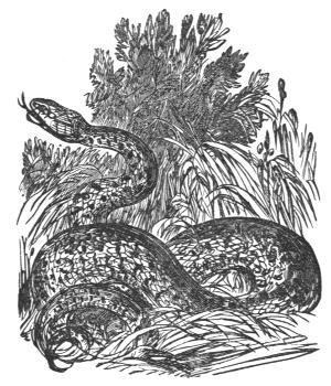 The entire empty skin of the snake may often be found among bushes, where the creature has gone in order to assist itself in casting off its old skin. Snakes, as well as other animals, wear out their coats, and are obliged to change them for others. When the change is about to take place, and a new coat has formed under the old, like a new skin under a blister, the creature betakes itself to some spot where is thick grass, reeds, or similar substances. A rent then opens in the neck, and the snake, by wriggling about among the stems, literally crawls out of its skin, which it leaves behind, turned inside out. Even the covering of the eyes is cast away, and in consequence the snake is partially blind for a day or two previously to the moult, if we may call it so.