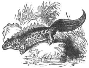 At this time the green back and orange belly attain a brighter tint, and the back is decorated with a wavy crest, tipped with crimson. This crest is continually waving from side to side as the creature moves, and forms graceful curves. The newts are equally at home in water and on land, and in the latter case have often been mistaken for lizards.