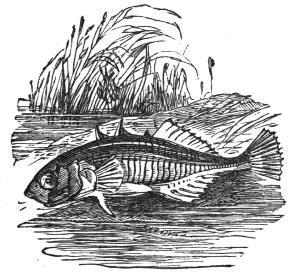 These little fish derive their name from the sharp spines with which they are armed, and which they can raise or depress at pleasure—as I know to my cost. For being, as boys often are, rather silly, I made a wager that I would swallow a minnow alive; and having made the bet, proceeded to win it. Unfortunately, instead of a minnow, a stickleback was handed to me, which having its spines pressed close to the body, was very like a minnow. Just as I swallowed it, the creature stuck up all its spines, and fixed itself firmly.