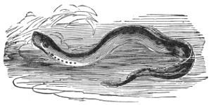 The chief external peculiarity in this creature is the mouth, which, instead of being formed with jaws like those of other fishes, resembles none of them, not even those of the eel, which it most resembles externally. Indeed, on looking at the mouth of a lampern, one is forcibly reminded of the leech, for it is possessed of no jaws, and adheres firmly to the skin by exhaustion of the air.