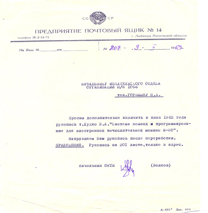 НАЧАЛЬНИК ОНТИ_____________________________ВолковЭто была попытка внести в план издательства мою первую книгу.