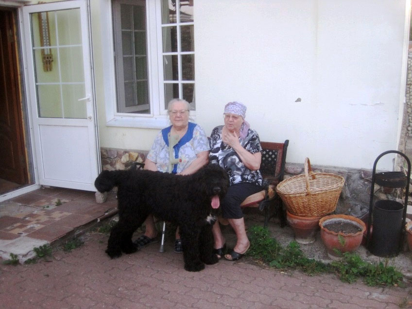 Рядом с нами молодая собака – Ева, порода – чёрный терьер, собака Сталина.