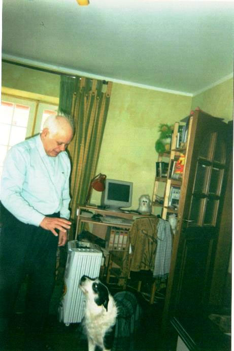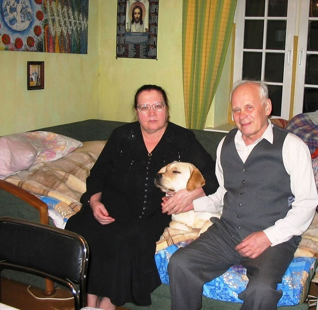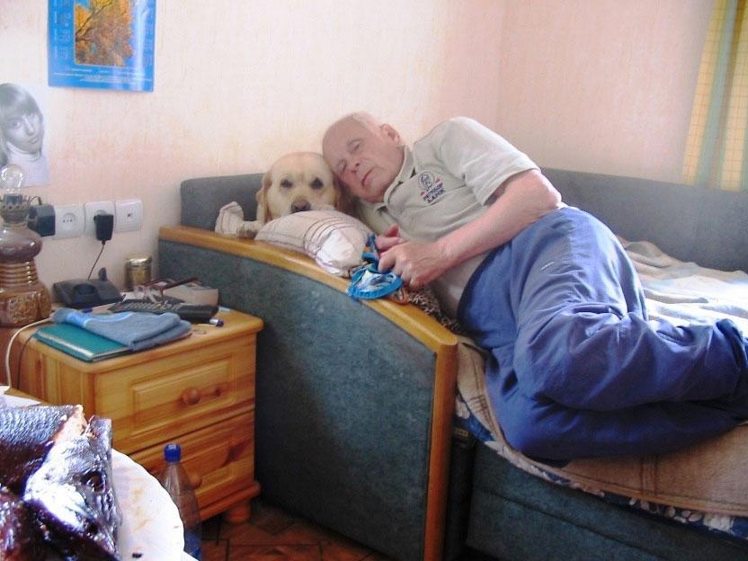 Виктор отдыхает на том – первом нашем диване, который купила для нас Стэлла. Рядом с ним наша собака лабрадор – Данка.
