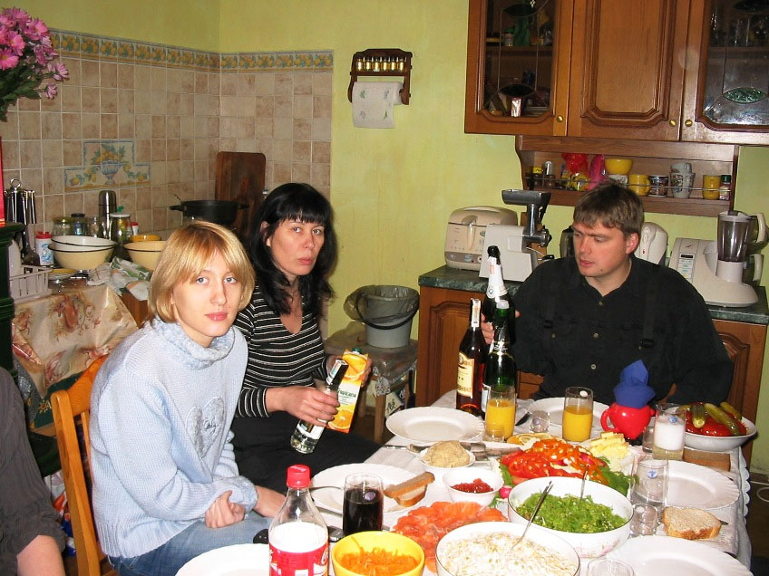 На снимке за завтраком – Валя в халатике. Поскольку Саша за рулём, чтобы выпить рюмочку коньяка за встречу, наши друзья приезжали с ночёвкой.