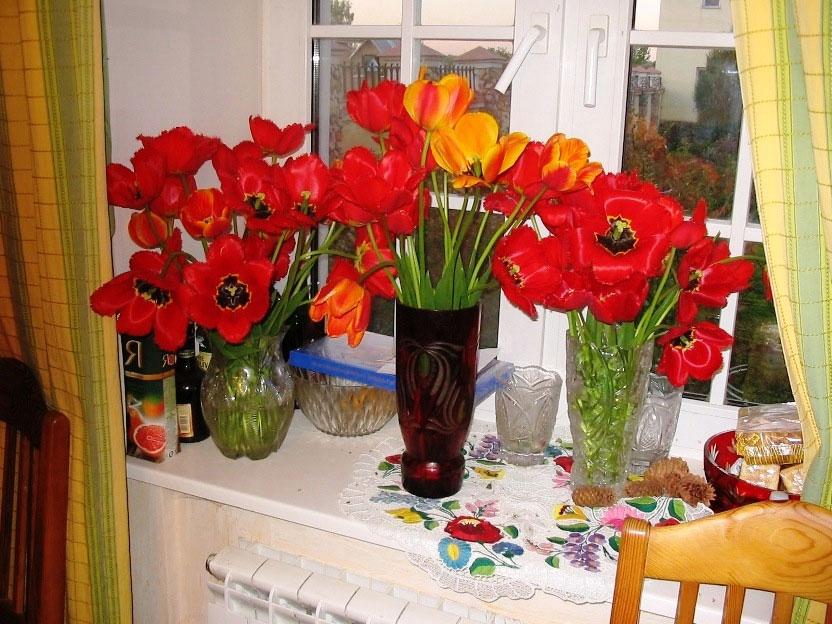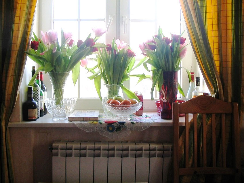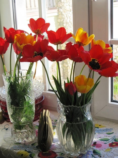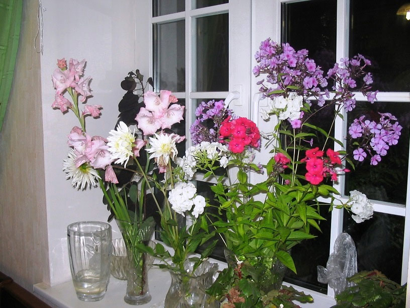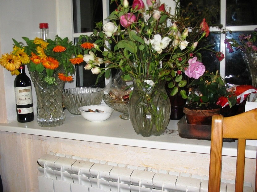 На участке, с ранней весны сменяя друг друга, наперегонки цветут самые разные цветы. Поэтому в вазах на окне всё лето стоят необычной композиции – букеты.