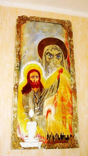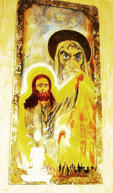Когда начала рисовать, вроде бы всё шло нормально. Но, когда я перешла к мелким деталям – лицо, руки, пальцы, сложенные для осенения крестом, рисунок на рубахе, я с ужасом поняла, что сделать это не смогу. У меня внешне не очень было заметно, как дрожат руки. Оказалось, что в действительности – тремер настолько усилился, что держать кисточку – не получается. Она в руках вибрирует…