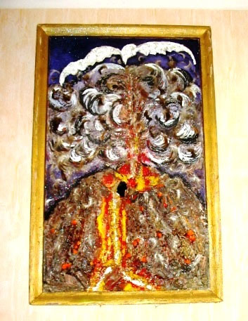 Картина – рельефная. Гора вылеплена из кусочков размоченной дощечки ДСП. Поскольку на снимке она кажется – плоской, придётся объяснить замысел её создания.