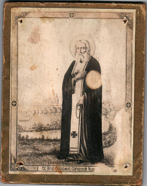 Потом у меня появились, кроме найденной – и другие иконки СЕРАФИМА САРОВСКОГО… Одну из них я повесила на стене рядом со старой семейной иконой…