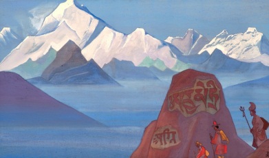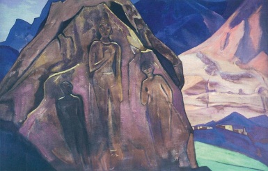 О священных надписях и силуэтах людей на скалах – Каменной Книге Земли, повествуют картины Николая Рерих ((сайты basic.ru и can.gallrix.asia):