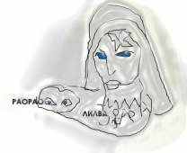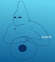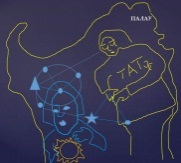 Он держит в руках звёзды. Под его руками есть изображение женского лица и надпись «Сара Мати», то есть, знатная мать. Это её яйцеклетку взяли для создания нового человечества, которое назвали, соответственно, сарматы.