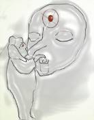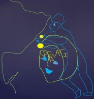 Кроме того, есть изображение женщины, смотрящй на всадника и кормящей большое лицо человека:
