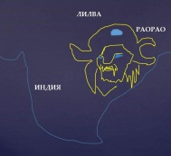 Как видите, во всех каменных текстах космический смысл. А на полуострове Индостан, если смотреть на карты от Кайласа на юг, возле Лилвы, видна выбитая голова бородатого Ария и даже написано «Зри ара», а левее – глаза жабы: