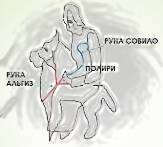 На животе у него висит табличка с выбитым на ней лицом человека, где написано «Дом рарога (сокола)». Где-то на небесах дом этого погибшего воина – сокола («ясного»). Подсказкой может служить морда быка в районе живота воина и стрелы. Значит, это созвездие Тельца.