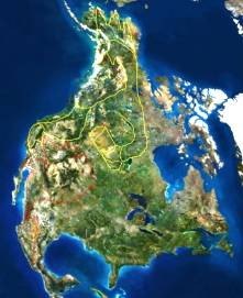 На правой – Храм Роши (Руси) Сима (сына Ноя). На нижних скалах виднеется изображение медведя, держащего дракона. На звёздном небе созвездие Малой Медведицы опоясывает созвездие Дракона. Случайно ли такое «совпадение»? А теперь посмотрите на первую картину художника, представленную в начале книги. Кажется, написано на санскрите, но читайте, как русские буквы, как считает профессор РАН В.А. Чудинов и считала Светлана Жарникова, и увидите: «Зикра (молитва) саори (богатыря) Тоти (Тота). Год горы 72(!)». Вот вам и «совпадение»! Одновременно, можно прочитать: «Ур яра (сильная психическая энергия). Молитвы храм. Дом Агарти». На спутниковой карте рельеф района Аляски выглядит как царь, сидящий на троне (www.geodus.com):