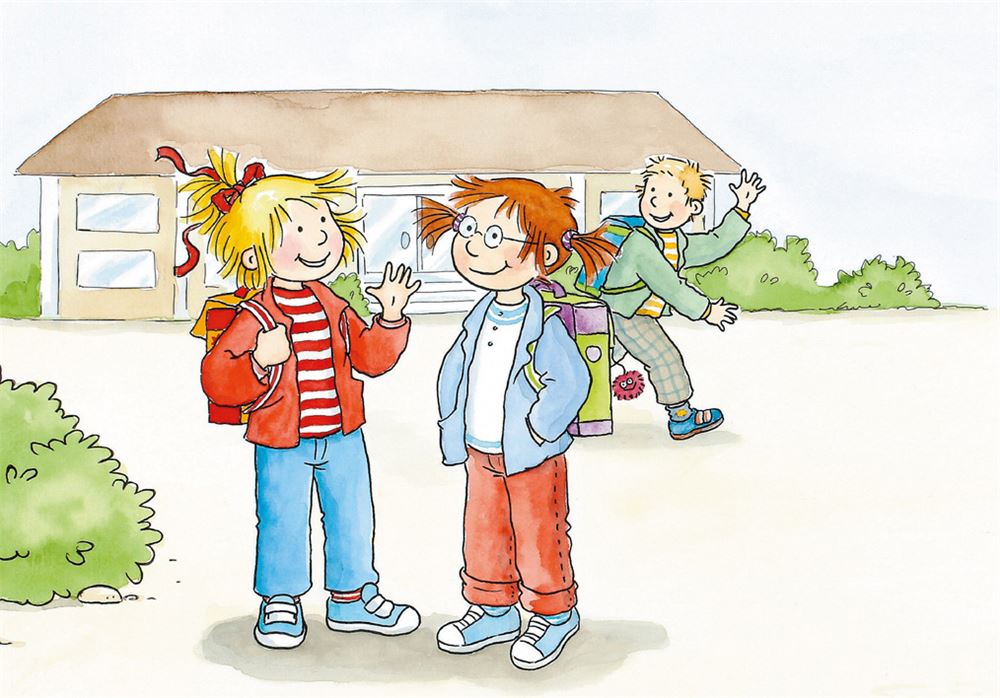 Сегодня Конни и Анне приходится одним возвращаться из школы. Обычно они ходят вместе со своим другом Симоном. Но сегодня ему не здоровилось, и мама забрала Симона прямо с урока математики.