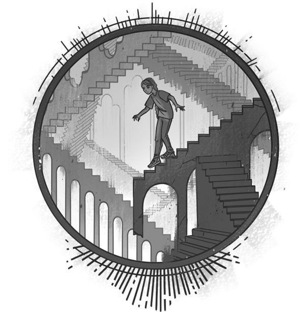 У остальных дела идут гораздо хуже. Дима бегает из одной комнаты в другую как заведённый, надеясь быстрее всех отыскать вещи, но ему всё не везёт. А вот Лера, бледная как моль, без движения стоит в прихожей возле входной двери и не моргая смотрит на вешалку, жмущуюся в тёмном углу к напольному зеркалу.